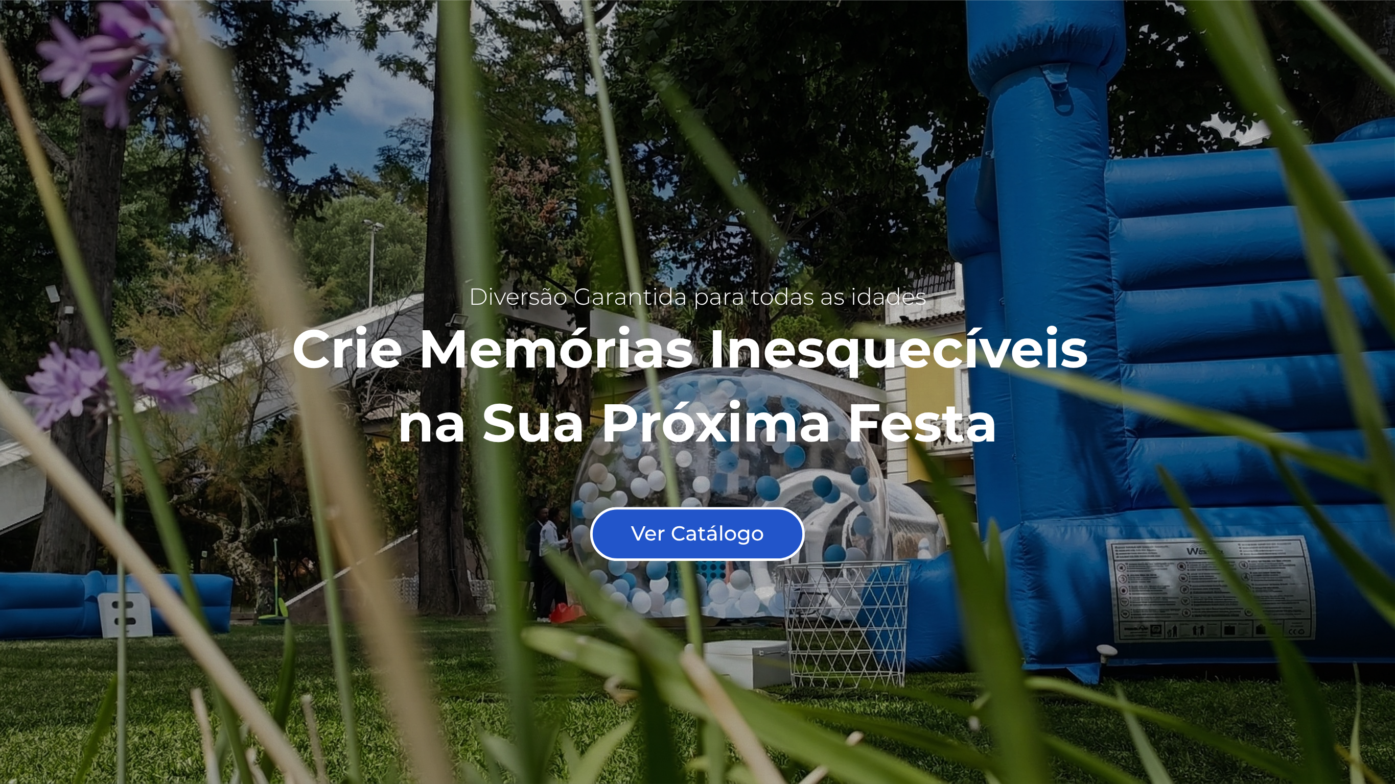 Idealmente, montamos em relva ou superfícies planas e lisas (cimento/pavimento). Por questões de segurança e preservação do material, não montamos em terra batida com lama, pedras soltas ou declives acentuados.